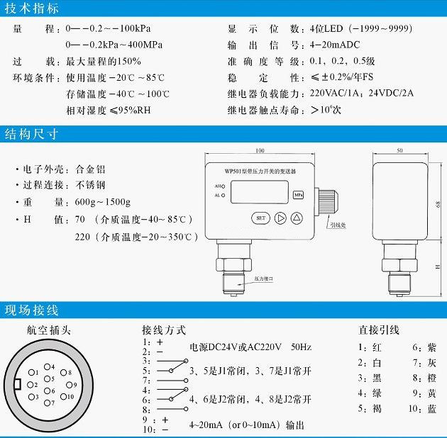 wp501型帶開關(guān)的壓力變送器采用世界優(yōu)秀的傳感器芯片為測(cè)壓元件,技術(shù)優(yōu)秀,質(zhì)量可靠,精度高,穩(wěn)定性好,體積小,重量輕,可直接過程安裝,帶數(shù)字顯示。